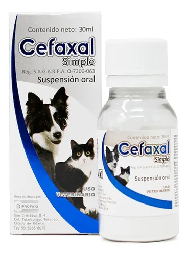 Cefaxal Simple: Antibiótico + antiinflamatorio en suspensión oral para perros y gatos (Cefalexina + Meloxicam)