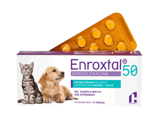 Enroxtal 50 mg: Antibiótico (Enrofloxacina) para infecciones respiratorias, urinarias, piel y otitis en perros y gatos