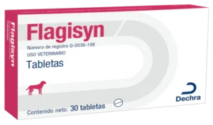 Flagisyn es un producto a base de metronidazol 150 mg por tableta. El metronidazol es ampliamente utilizado en veterinaria cuando se requiere apoyo frente a protozoarios entéricos y bacterias anaerobias, siempre bajo diagnóstico y receta del Médico Veterinario.
