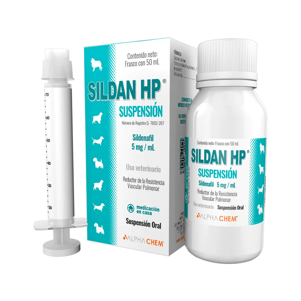 La hipertensión pulmonar puede afectar seriamente la calidad de vida de tu perro, provocando dificultad para respirar, cansancio rápido y disminución en su actividad diaria. Sildan HP Suspensión 50 ml es un medicamento veterinario a base de citrato de sildenafil 5 mg/mL, diseñado para el manejo de la hipertensión pulmonar (HP) en perros asociada a enfermedades cardiacas y respiratorias.